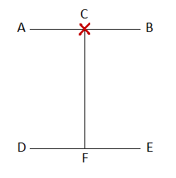 El estudiante está parado en la línea AB mirando hacia D.
